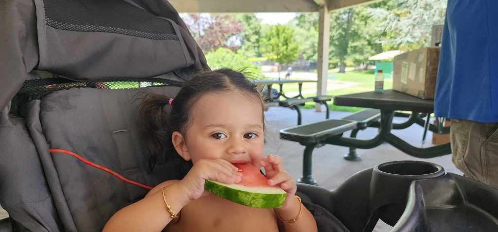 The next day, we had family day picnic for work. Man, I work hard as Assistant Controller. I had to put together this whole thing. I had to keep telling mom where to do it and how to do it. Whew, was it hard. But all of my 2 News friends came except for a couple. I missed the ones that couldn’t come but I had fun with the ones that did. The park had all the sticks, and rocks, and so many other things that I kept getting into to. My moms kept yelling the ‘no’ word again. I really should figure out what that word means. But not right now. Life’s too short to understand two letter words that seem negative. By the ways – watermelon is absolutely amazing! But eating a cold slice of watermelon while naked in park – heaven. Simply heaven.