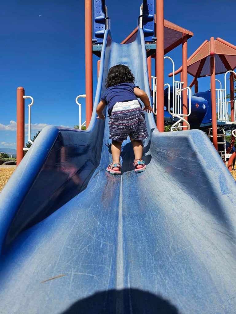 Friends! My Mama and I did a huge thing today. I am part of this super secret hiking club that lets me meet lots of friends. Today, my Mama and I hosted our very own hike! So many friends showed up for our first time. Mama said this would be a wandering hike, but us kids passed around our own memo saying that we needed to get to the playground as quickly as possible for extra play time. I took off on my own wandering with other moms and other pint size humans. I love that my Mama takes me on adventures with this super secret club. It’s so much fun! I hope your Mom’s are as cool as mine and take you on adventures too!