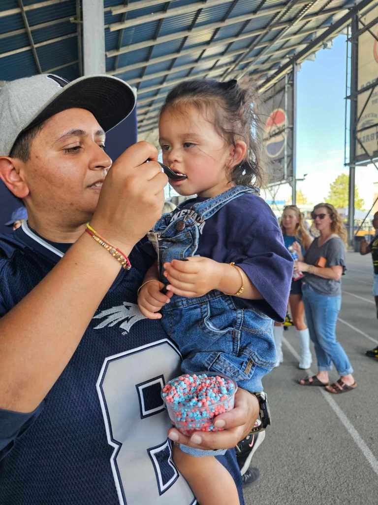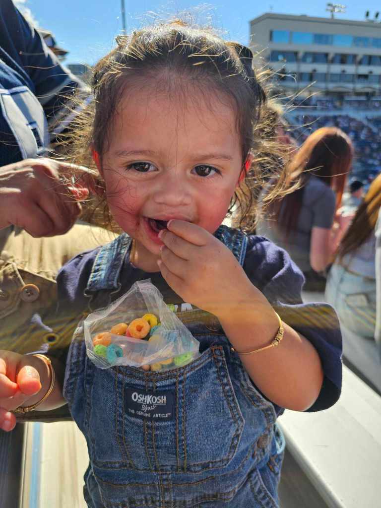 At the game, I got to see my Auntie Beth and Uncle Noah! I even helped them sell some burgers for Little League! My mom tried to introduce me to Luna, but I wasn’t so sure of her. Ballfoot is weird and hot. Moms bought me something called dippin dots too, THAT WAS SO YUMMY!