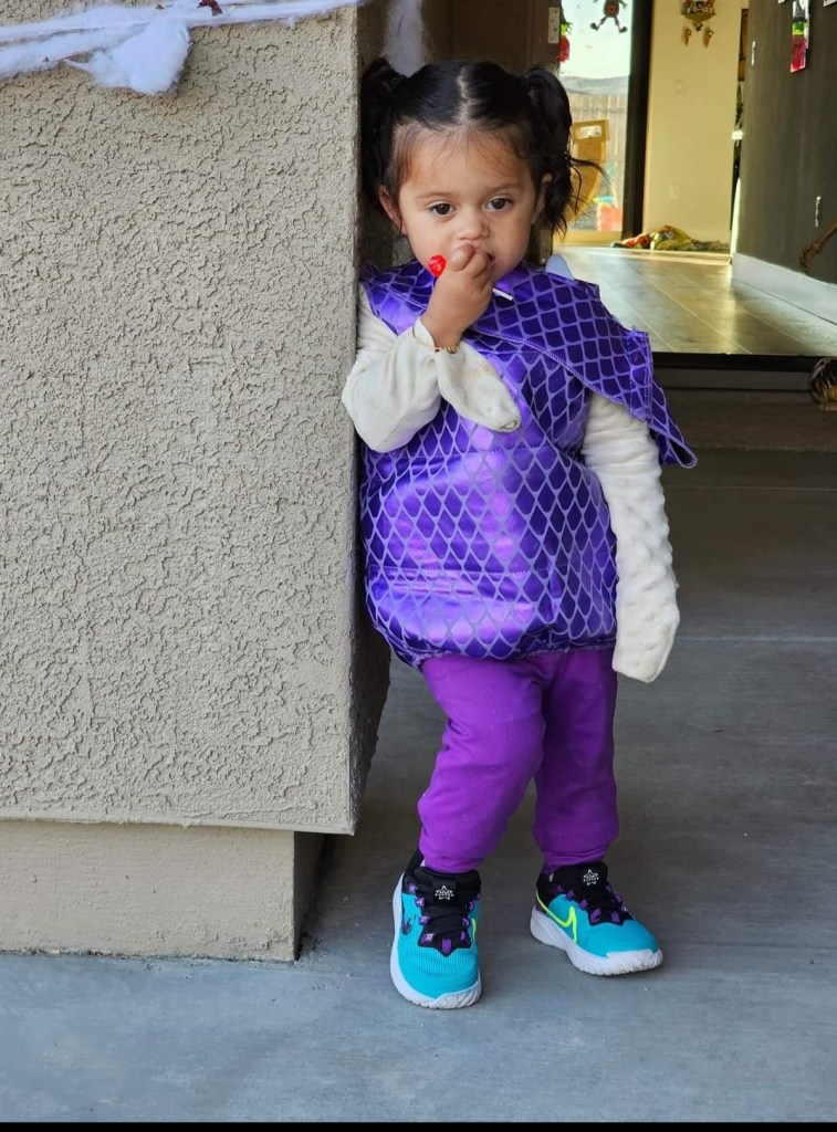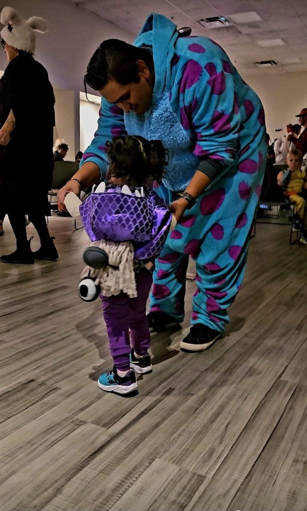 Now back to Halloween. Mama dressed us up as Monsters Inc. She was Mike Wa…Wa…Wazowski? I think that’s how it’s spelled…remember, I am not even two yet. Cut me some slack. Mom was Kitty, and I was Boo. Not to be bias or anything, but I was the cutest Boo out there.