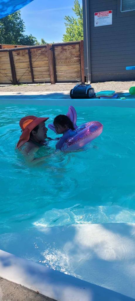 The so-called stranger did teach me something super cool though! She taught me to blow bubbles in the water! I didn’t know you could do that. Then she put me in floaties and swished me around more….and I pulled out the best resting b-i-t-c-h face I could because I was not impressed.
